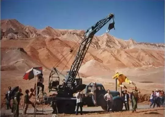 一架摄像机无法实现多机位拍摄,摄影师就抱着机器爬上爬下、俯仰滚爬。为了拍摄俯拍镜头,甚至将摄影师绑在一架洒农药的飞机舱门旁边,探出身子拍下面的山景。