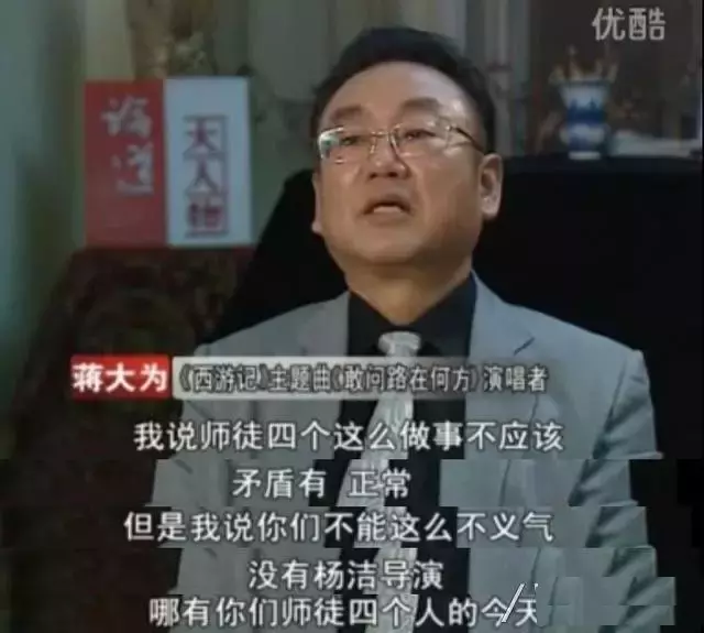 《敢问路在何方》演唱者蒋大为为此打抱不平:“ 你们不能这么没义气,没有杨洁导演,哪有你们师徒四个人的今天? ”