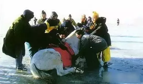 唐僧师徒四人拍摄走过瀑布的场景时也差点滑脚跌落。就连白龙马,也曾多次遭遇跌落沟渠等险情。