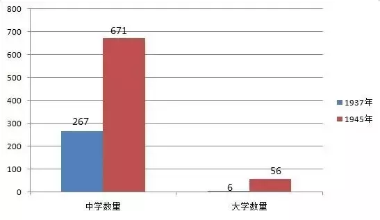 特别是中等学校和高等学校大量增加,为抗战提供了技术和人才支撑。