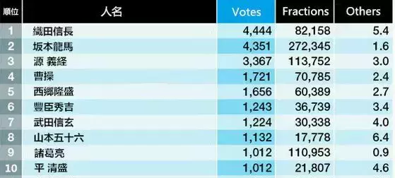 日本最喜爱的历史人物排名,三国人物占了两个。