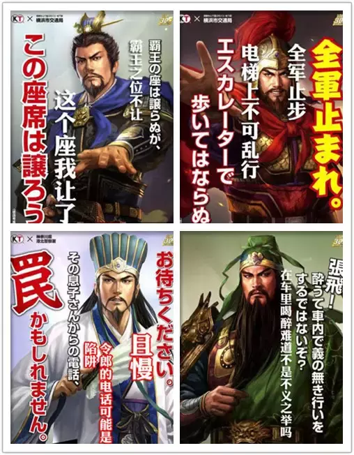 日本出过一套三国系列海报,以三国人物提示安全防范注意事项。