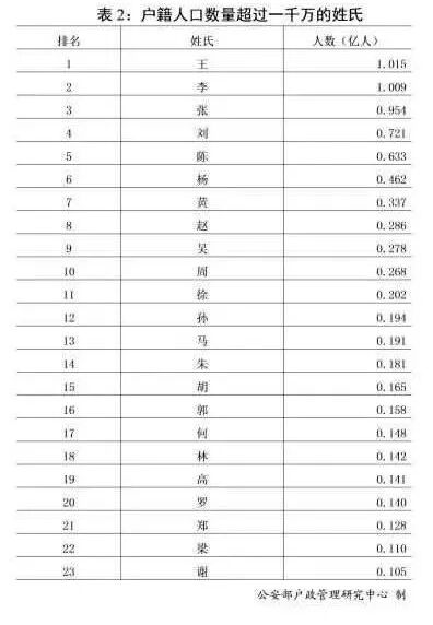 其中,王、李两姓分别位于第一、第二名,人数均超过一亿人。张姓排名第三,仅差460万人就达到亿人大关。