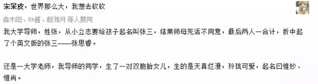 同时,知乎上曾经讨论过“你听过最好听的名字是什么?“的话题: