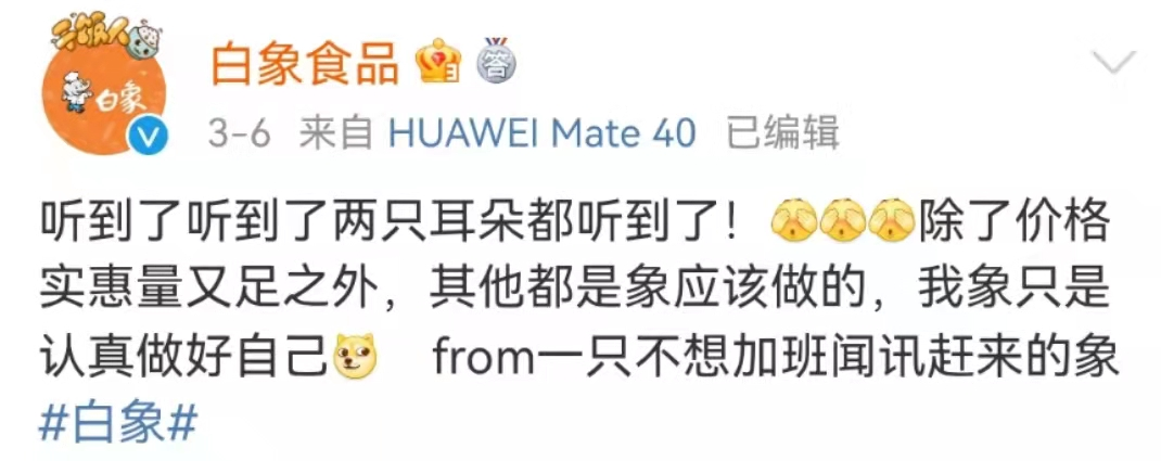 正因为坚持品质,踏实做事,白象的突然走红,并不奇怪。