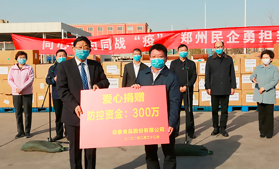 2020年抗击疫情,白象第一时间捐赠抗疫物资,并捐款300万。
