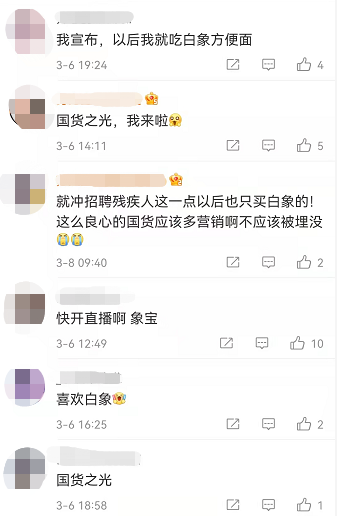 很多网友自发为白象宣传,“吃面就吃白象泡面”。