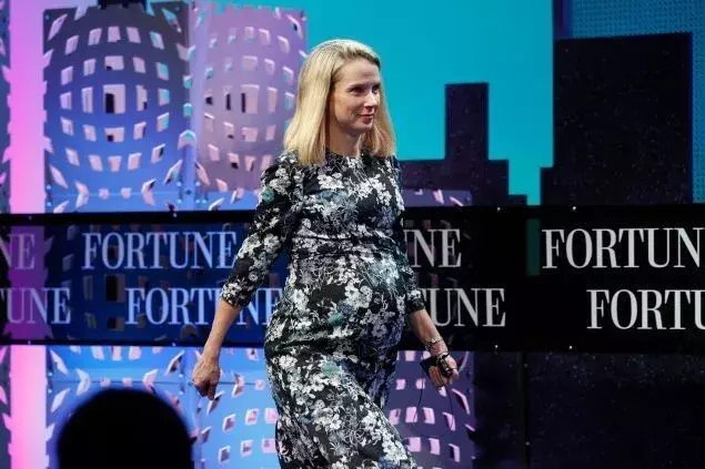梅耶尔挺着大肚子参加“财富论坛”