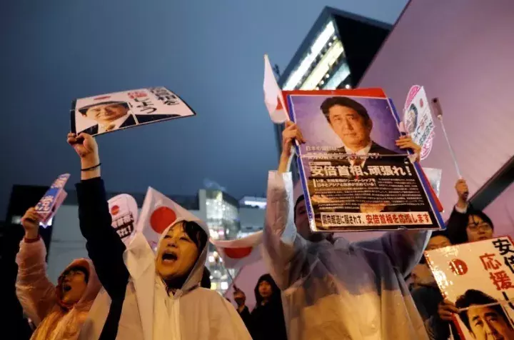 几小时后,安倍晋三将第4次赢得大选,并连续第3次出任日本首相。