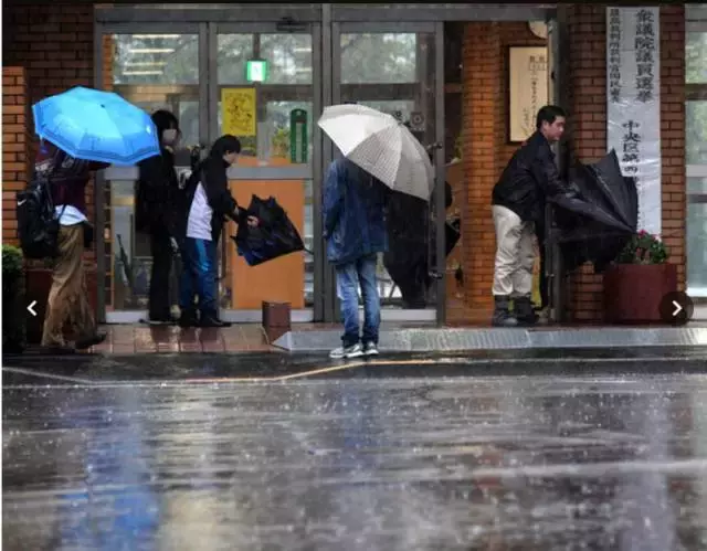 冒雨前往投票站的日本民众(来源:朝日新闻)