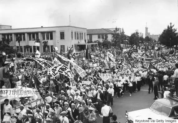 抗议岸信介的示威游行(来源:huffingtonpost.com)