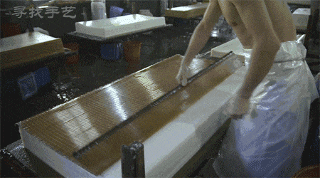 质量好不在于配方神秘,而在于认真。捞纸的竹帘是本村匠人编的。两个人快手编,一天能编20厘米长。席子编好后,还有涂漆、刷匀、晾晒等工序。漆是土漆,是从漆树树皮上割下来的树浆。涂漆必须用丝绸揉成的团来涂。刷子是猪鬃毛做的。手工艺的精髓在于一份执着的讲究。千百年的规矩不会轻易改,每一步流程不偷工减料。
