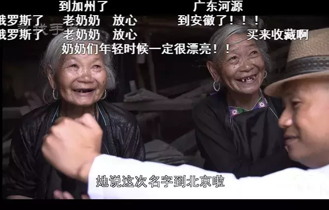 拍摄之后,张景给老人们拍了照片并通过显示屏让老人们看了,还记录了她们的名字。她俩高兴了,说:“这样的话,我们的照片就可以去北京了,就算名字到了北京也好呀”。播放后,这一段弹幕特别多,“阿妈,你们到北京了”,“已到广东河源”,“已到深圳”,“已到俄罗斯”,“已到纽约”……“已到温哥华”。手艺失传的落寞像水纹一样越扩越远,越散越淡。