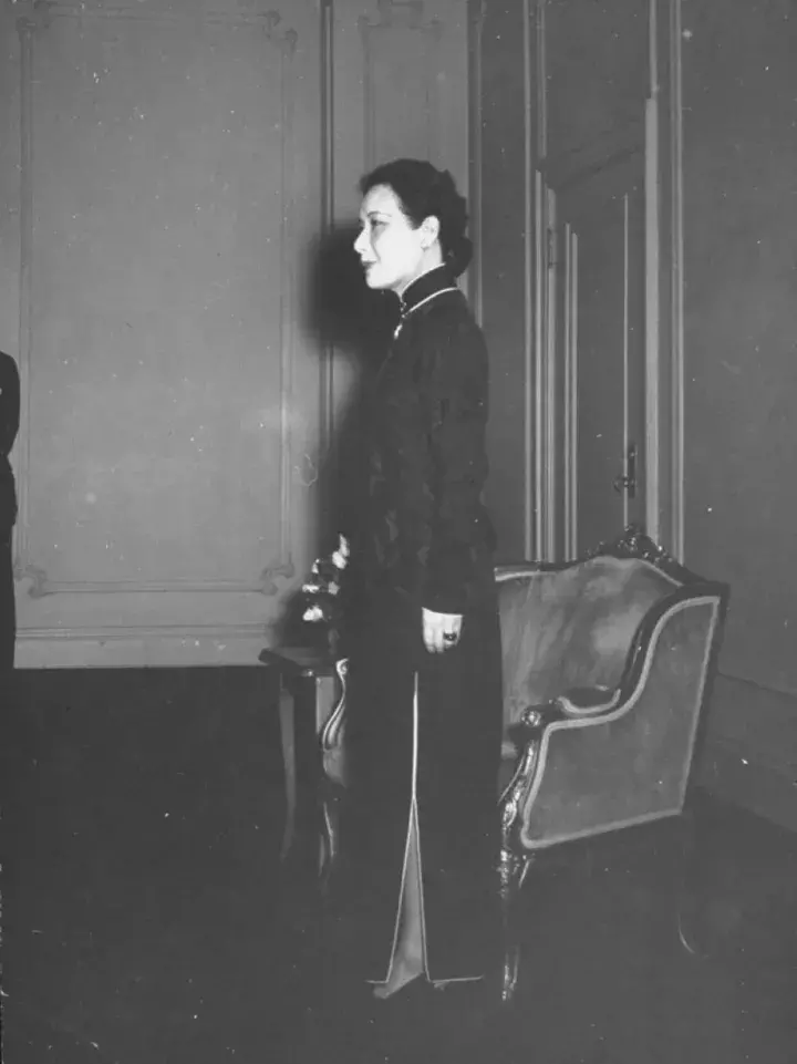 明眸皓齿,一袭绣着金色菊花的紧身黑缎旗袍更衬得宋美龄雍容典雅。彼时,她扮演的角色不是夫贵妻荣的女配,更不是聊胜于无的“壁花”,穿梭于蒋介石和美国总统罗斯福、英国首相丘吉尔等一众决定世界走向的巨头中间,她毫不怯场,更不输阵,充分展示了她圆熟自洽的交际能力和纵横捭阖的外交才干。