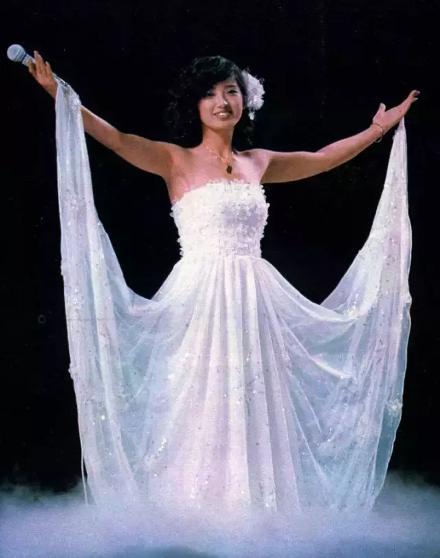 出现在舞台上的山口百惠一袭长裙,如白云出岫,翩然若仙。