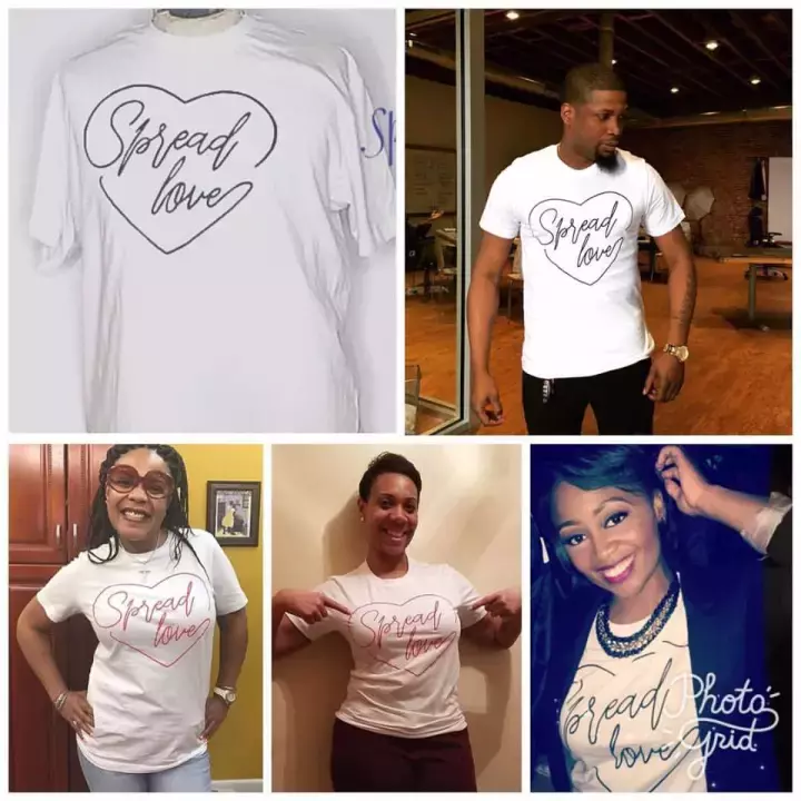 他设计了印着“Spread Love”(让爱传播)的T恤去义卖。