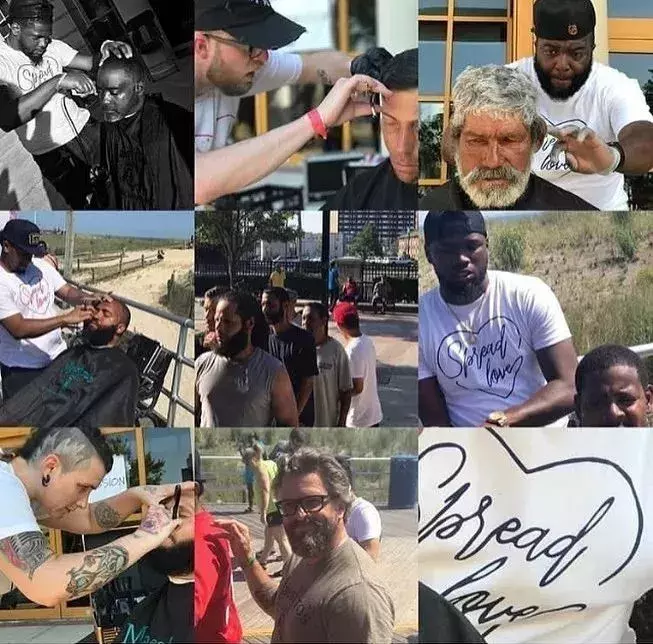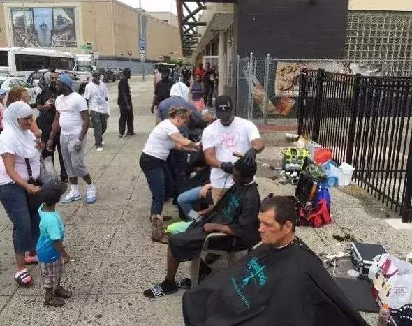 他将自己的行动注册了一个名字,“Haircut4Homeless”,并开始召集“同行”和更多的人帮助。他们第一次行动就为108人理了发。