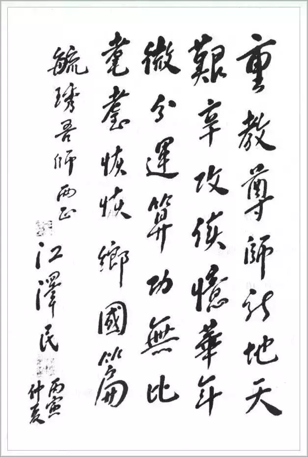 江 泽 民主席是在这次访美的过程中特意抽出时间来探望自己的恩师,他激动地说:“您是我的老师,我今天见到您,又想起了51年前您教我们运算微积分的情景。您实在了不起,您不仅是电机博士,而且是戏剧家、诗人。”