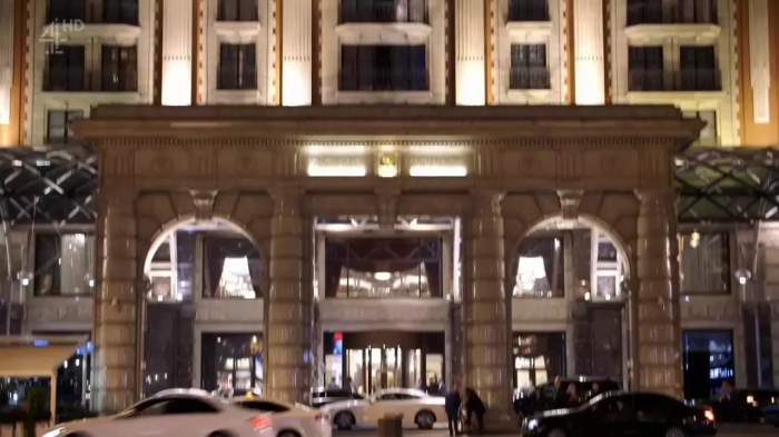 这是位于莫斯科市中心的金碧辉煌的丽兹-卡尔顿酒店。2013年“环球小姐”选美比赛期间,特朗普就下榻在这里。有人爆料说,在丽兹-卡尔顿酒店的顶层总统套间里,特朗普参与了一些不正常的色情活动,被俄罗斯情报机构拍了下来,作为把柄,用来胁迫未来的美国总统。