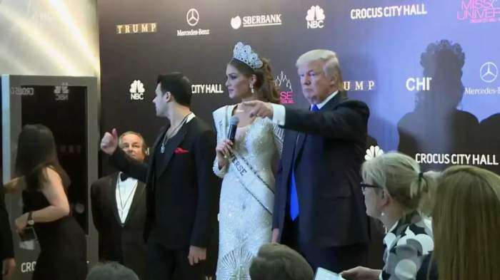 当时,特朗普希望俄罗斯总统普京也能出席“环球小姐”选美比赛,但普京没有来。不过,在比赛当天,即2013年11月9日的一次采访中,特朗普宣称自己跟普京有联系,还对普京大加赞赏。