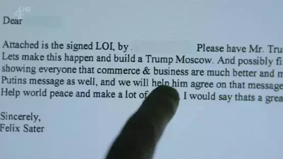 塞特一直在给特朗普和莫斯科方面当中间人。最近一次是在2015年年底,多次试图在俄罗斯首都建造“特朗普大厦”。塞特发的下面这封电子邮件被曝光。