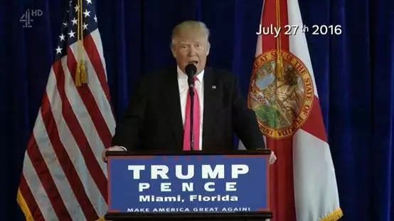 2016年7月27日,特朗普在竞选活动中如是说:“我告诉你们,俄罗斯——如果你们正在听的话,我希望你们能够找到那丢失的3万封电子邮件。我想,你们会得到我们媒体的巨大奖赏的。”