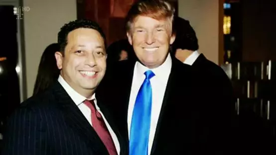 下图中中间的这名男子名叫罗布•戈尔德斯通,他是戈尔德斯通是特朗普通过“环球小姐”大赛结识的明星伙伴——埃明•阿加拉罗夫的英国公关人员。