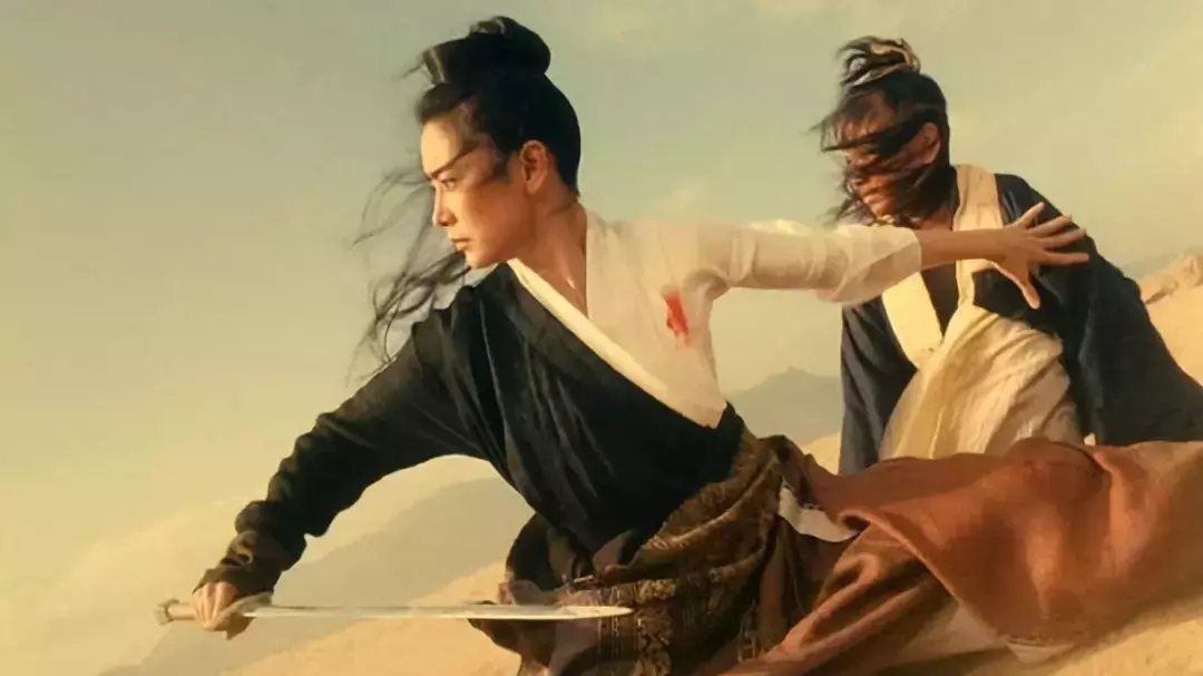 在影片中,她双眉似蹙,鬓如刀裁。红装时天资绝色,男相时冷峻飘逸;豪饮时恣肆汪洋,回首间媚眼如风;她席地而坐,弹指杀敌而疏狂自若;她坠落悬崖,凄然一笑恍若飞仙。