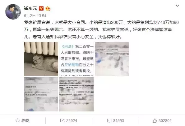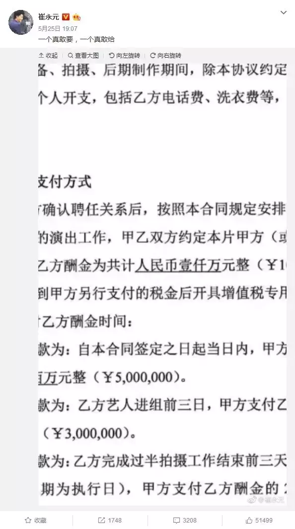 前几天,崔永元曝光了娱乐圈的乱象之一:“大小”阴阳合同的存在!更令人瞠目结舌的是,6000万天价片酬,仅仅是明星的4天演出所得!
