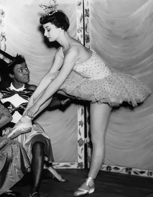 芭蕾舞几乎伴随了赫本的一生,之所以后来被人称作“人间仙子”,便是因为她跳芭蕾舞时的样子飘飘如仙。1952年的《双姝艳》,1957年的《甜姐儿》等影片中都可以看到赫本跳舞的样子。