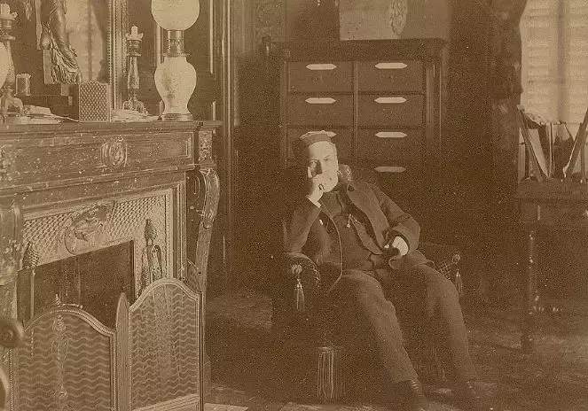 1892年,巴斯德在壁炉旁边的客厅椅子休息