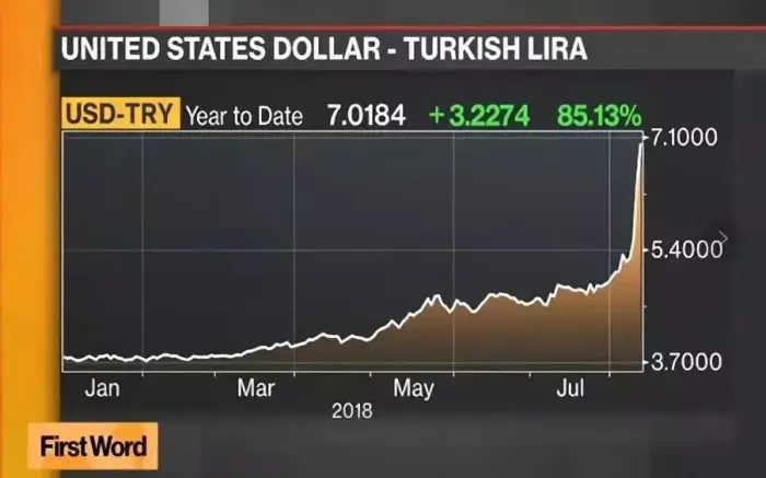 那么,土耳其的汇率怎么会出现如此大的动荡,而且是有史以来最大的暴跌?