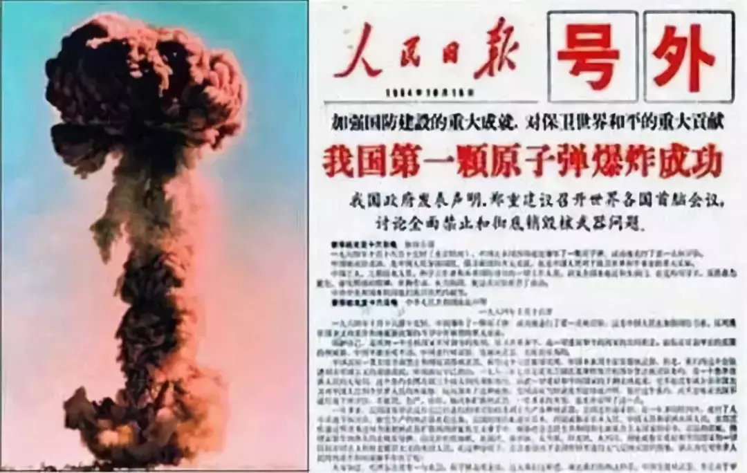 1964年10月16日,中国第一朵蘑菇云腾空而起,中国真正地站了起来。