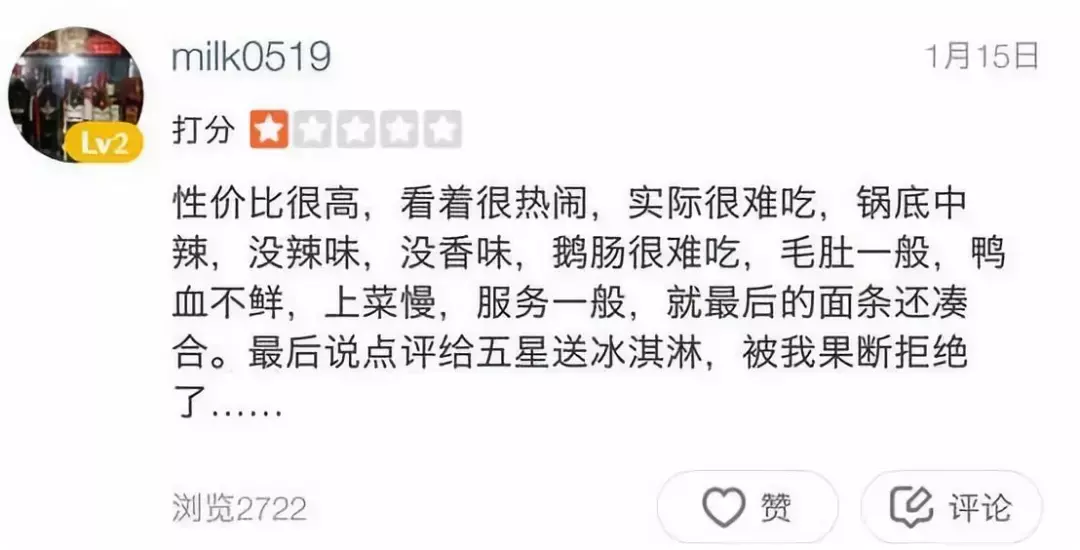 最不厚道的是,价格上来了,但味道却没上来,有不少吃过这家火锅店的网友都觉得这家火锅店味道真的很一般,连火锅最重要的锅底都不够用心,更何况四个人点个锅底点几个菜就要上千元。
