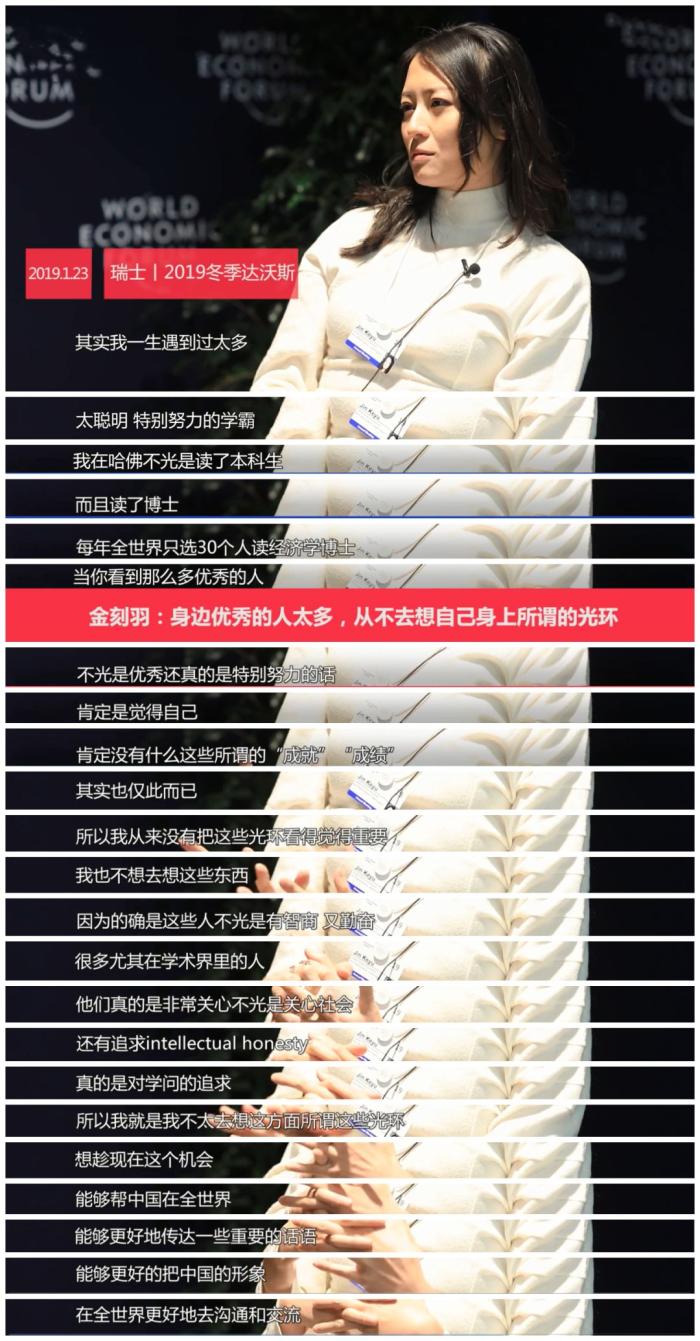 打开英文视频,常见她在彭博社、路透社、央视外语频道、CNBC、TED以及各大经济论坛的精彩演讲和采访连线,外语流畅自如、见解独树一帜。尽管出色的经历和才华使其一骑绝尘,但极其低调的她只在适当的场合绽放光芒。