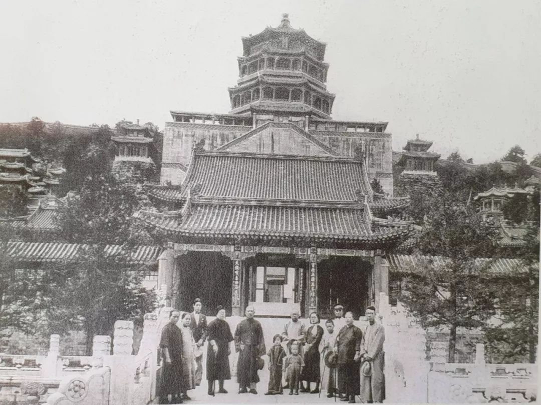 ▲ 1931年,聂父为躲避国民党特务,全家去了北平。聂父和聂母站在姐弟俩后面。这是聂华苓仅有的一张父亲模糊影像的照片