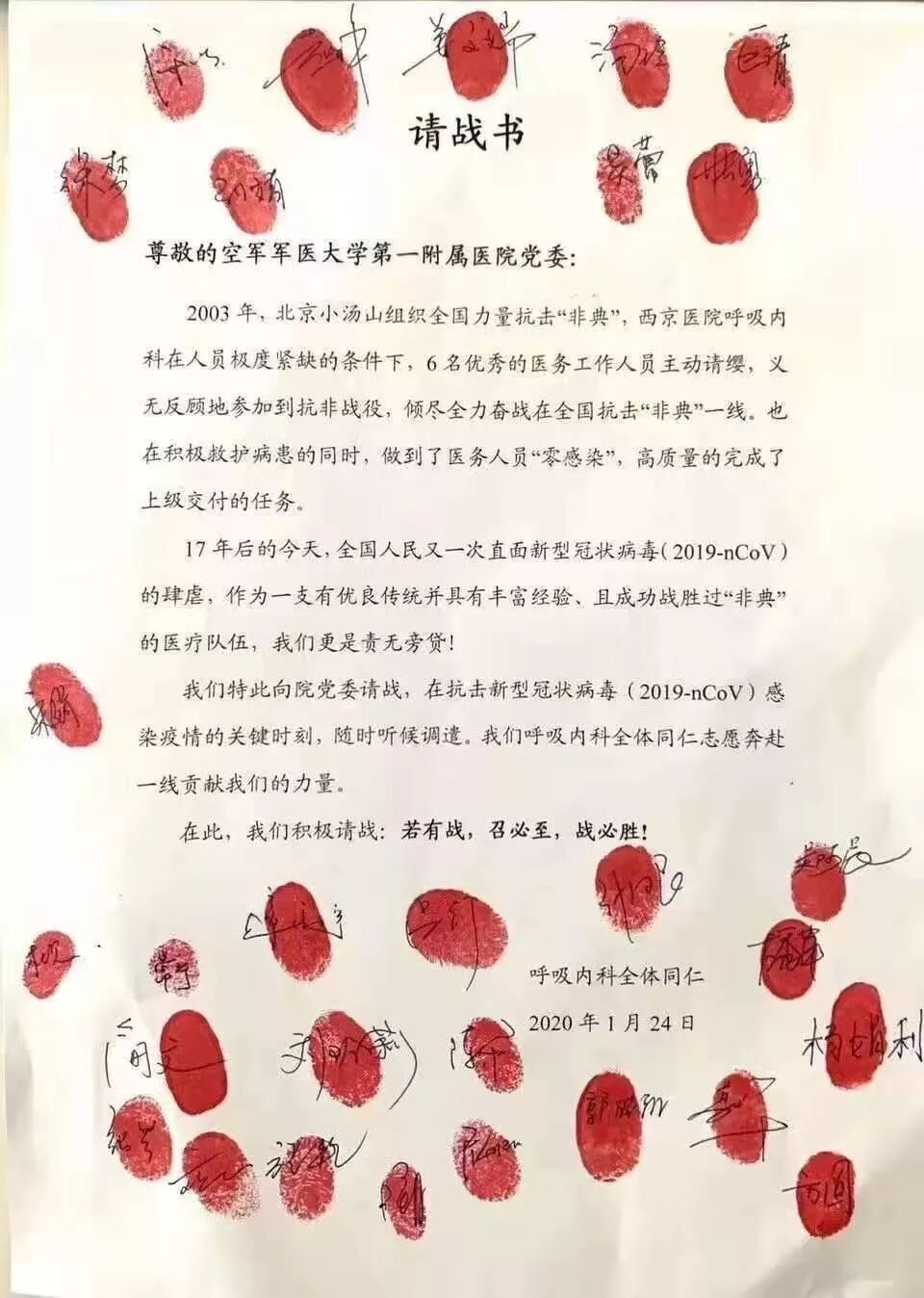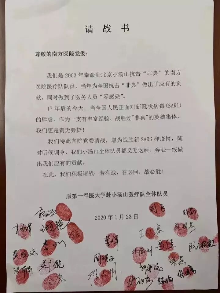 “我们特此向院党委请战,愿为战胜新SARS样疫情,随时听候调遣,我们小汤山全体队员都义无反顾,奔赴一线做出我们应有的贡献。