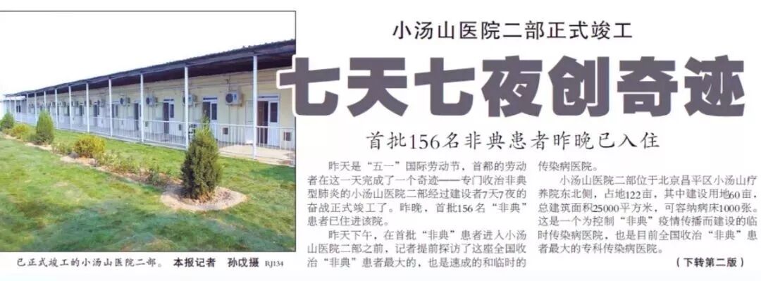 一边设计一边施工,7天7夜后,小汤山医院在5月1日深夜接收了第一批患者。
