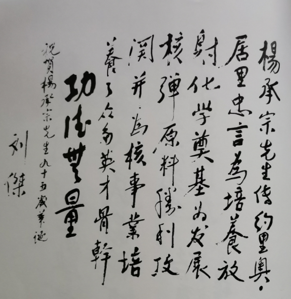● 二机部部长刘杰在评价杨承宗时曾这样写道:杨承宗先生传约里奥·居里忠言,为培养放射化学奠基,为发展核弹原料胜利攻关,并为核事业培养了众多英才骨干,功德无量!