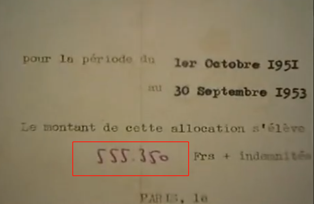 ● 居里实验室发给杨承宗的国家科学实验室聘请书,上面标注的年薪为555350法郎