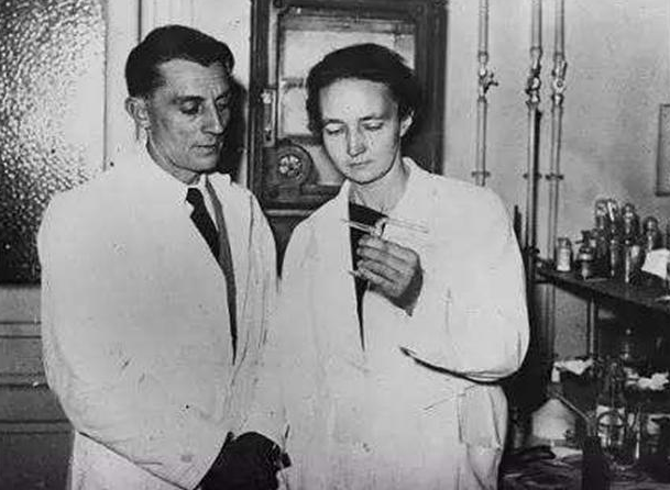 ● 伊雷娜·居里与丈夫约里奥·居里在实验室