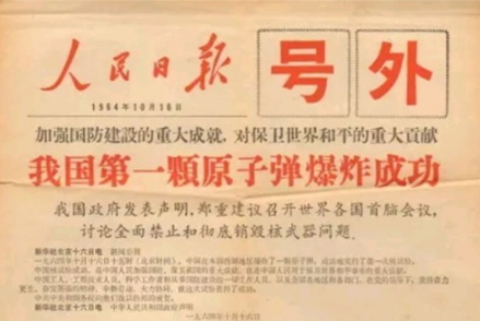 1965年10月16日,中国第一颗原子弹试爆成功。