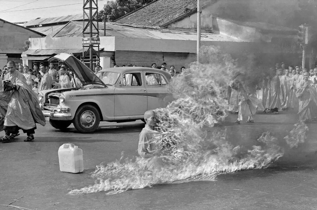 1963年6月,一位名叫释广德的越南老僧人,在西贡街头自焚。