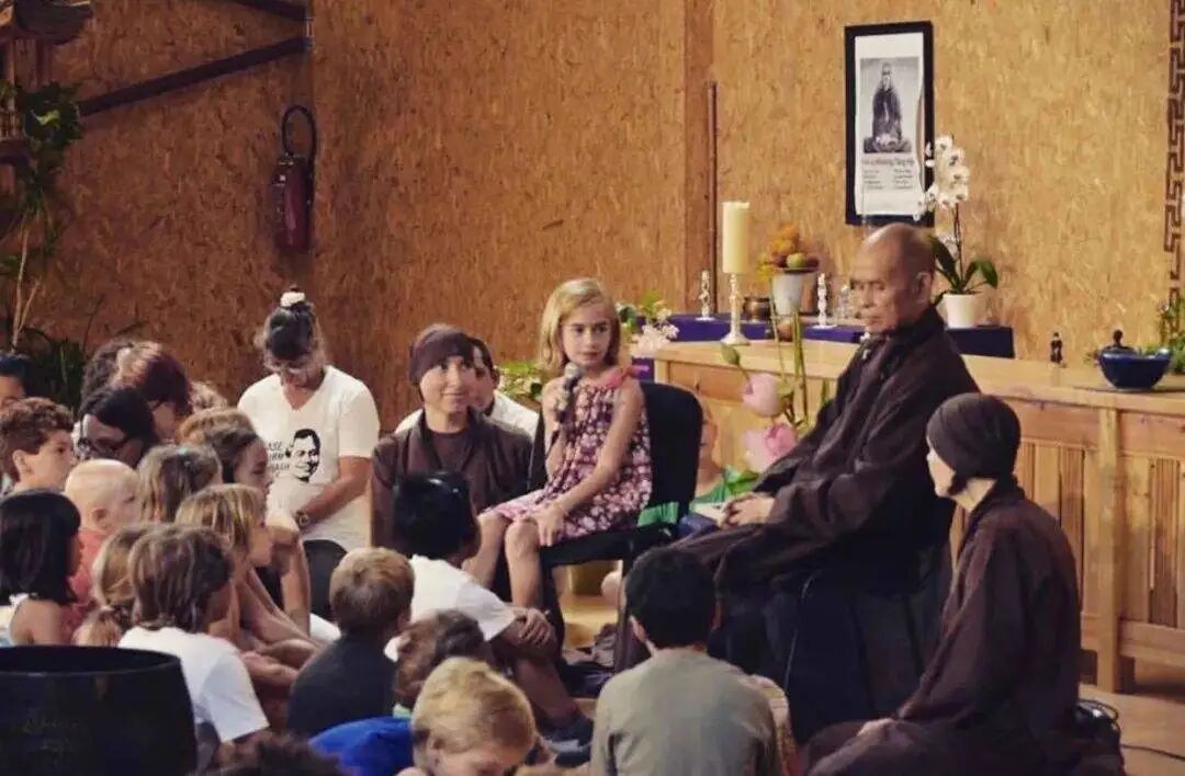 ● 一行禅师在梅村上村静水禅堂为儿童做展示