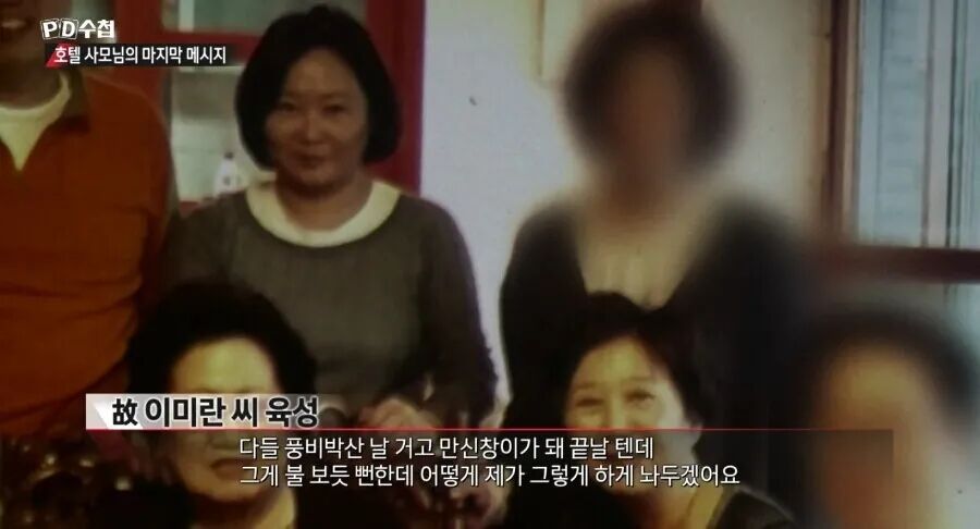 有一天,李美兰的姐姐李美京接到电话,急忙赶过去,只见她的左背有三处刀伤,血流不止。