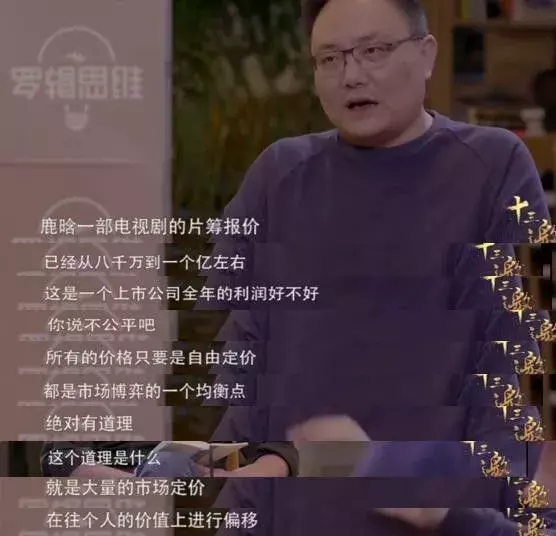 罗振宇曾在接受访谈时说过这样的话:“你说鹿晗的工资太高不公平,但所有的价格只要是自由定价都是市场博弈的一个均衡点,有其自身的道理,而这个道理就是大量的市场定价在向个人的价值上进行偏移。”