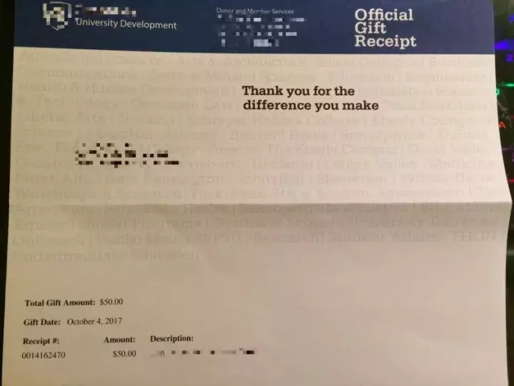 而且和国内捐赠一样,美国这边收到捐款后的机构也会给你开出收据,尽可能做到捐赠透明、有理有据: