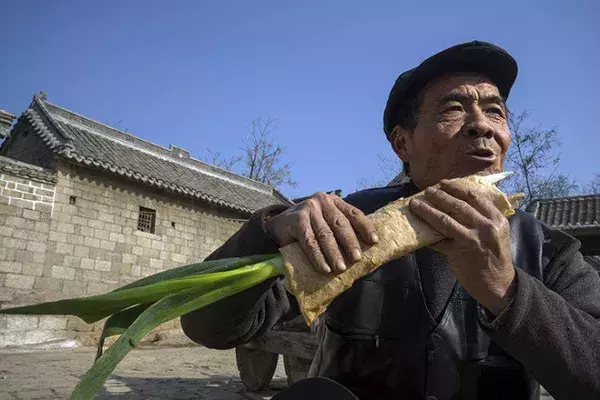 最能体现游民文化的食物就是山东最质朴的美食——煎饼卷大葱。我们可以想想这个画面,居无定所的好汉们,哪有顿顿吃得到四菜一汤?在流浪的路上,干干的煎饼倒也坏不了,饿的时候,便从地上摘下一颗大葱,卷在饼中,边走边吃,省事而又冲味十足,这倒符合山东好汉粗犷豪放的个性。