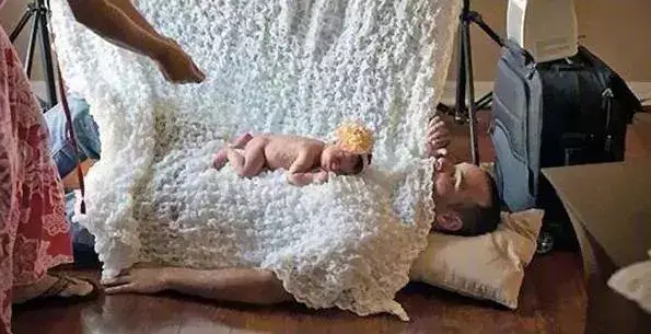 刚出生的宝宝拍照,担心孩子趴在地上凉,