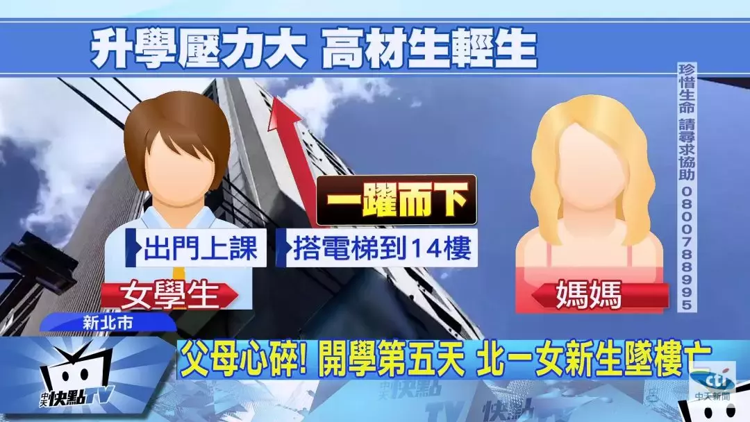 2017年9月,台湾一名北一女学生,因学习压力大而选择跳楼自杀